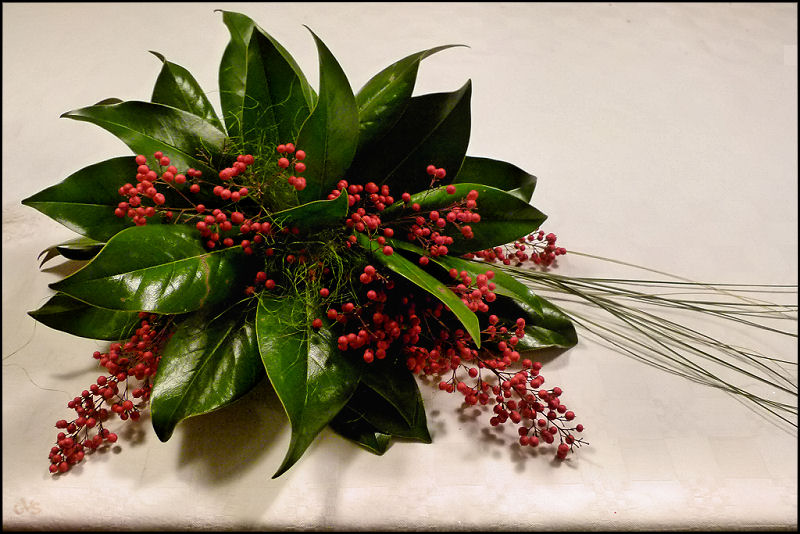 centrotavola, realizzata con foglie di magnolia e