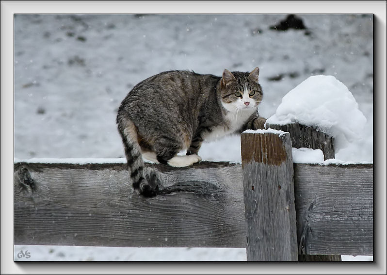 Ho scattato questa foto durante le mie vacanze invernali a Sesto Pusteria (Bolzano). Stava nevicando, ma questo gatto non era per nulla infastidito dalla neve, anzi si è messo bene in posa per la foto.